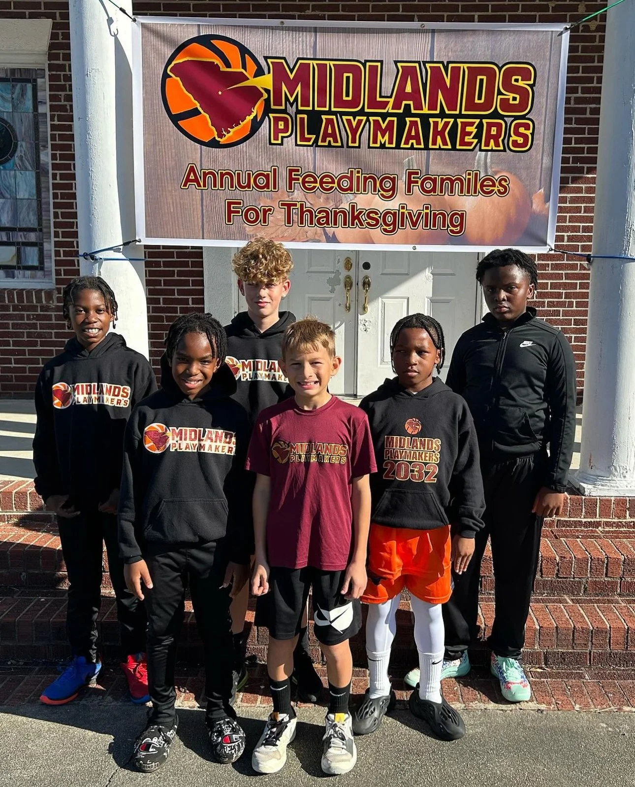 Beyond the court, The Midlands Playmakers are committed to giving back to the community. We actively participate in programs to impact the lives of those in our community. Most recently we have sponsored families at Christmas with Families Helping Families, and we also hold an annual event: Feeding Families for Thanksgiving. Thanks to your generous donations, our young men were able to give out 108 Thanksgiving meal boxes for our community!